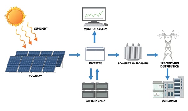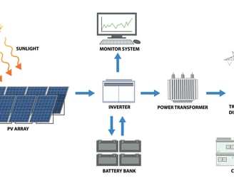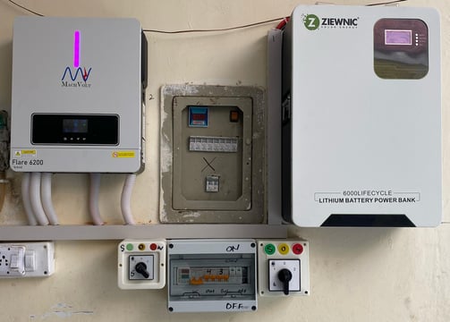 âš¡ Components: Solar Panels + Inverter + Battery Bank