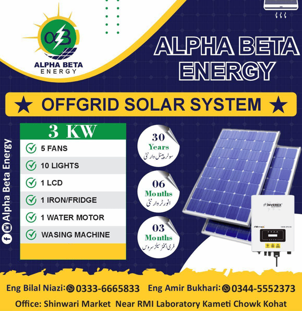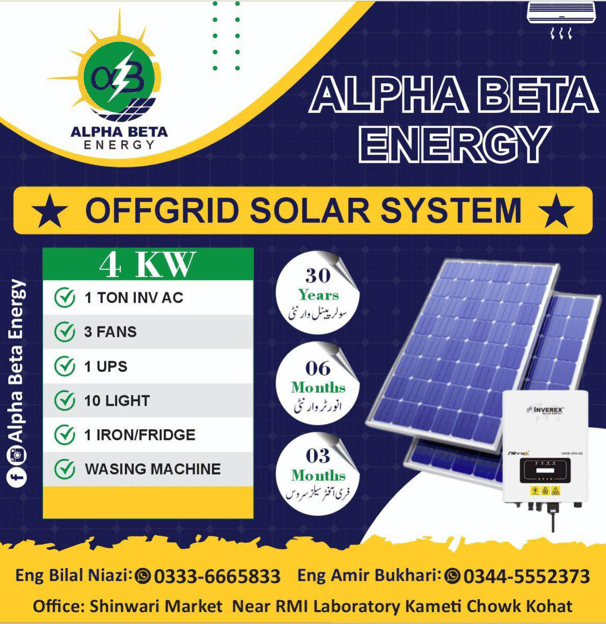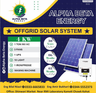 At Alpha Beta Energy, we believe in harnessing the power of the sun to provide clean, sustainable, and cost-effective energy solutions. Based in Kohat, Pakistan, we specialize in designing, installing, and maintaining high-performance solar systems for residential, commercial, and industrial clients.